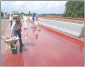 從左圖中可以清楚地看到經(jīng)過拋丸處理的表面水珠在表面迅速擴(kuò)散開 1)表面張力發(fā)生明顯變化 2)干凈, 可以直接涂裝封閉層或黏結(jié)層 3)粗糙均勻的表面 4)封閉層或黏結(jié)層材料可以完全滲透到混凝土內(nèi),形成良好的封閉和黏結(jié)效果