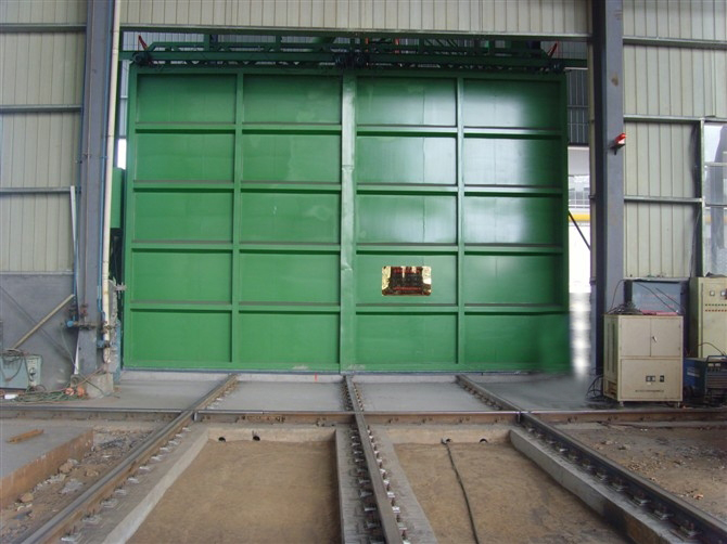 貨車外皮拋丸除銹設(shè)備專用于對進(jìn)行廠修的貨車車體進(jìn)行拋丸除銹,由拋丸室室體、拋頭、輸供砂系統(tǒng)、車體牽引系統(tǒng)、除塵裝置及電控裝置等主要部分組成。技術(shù)上的主要特點(diǎn),是采用若干臺活動(dòng)拋頭代替部分固定拋頭,從而大幅度簡化了結(jié)構(gòu)。